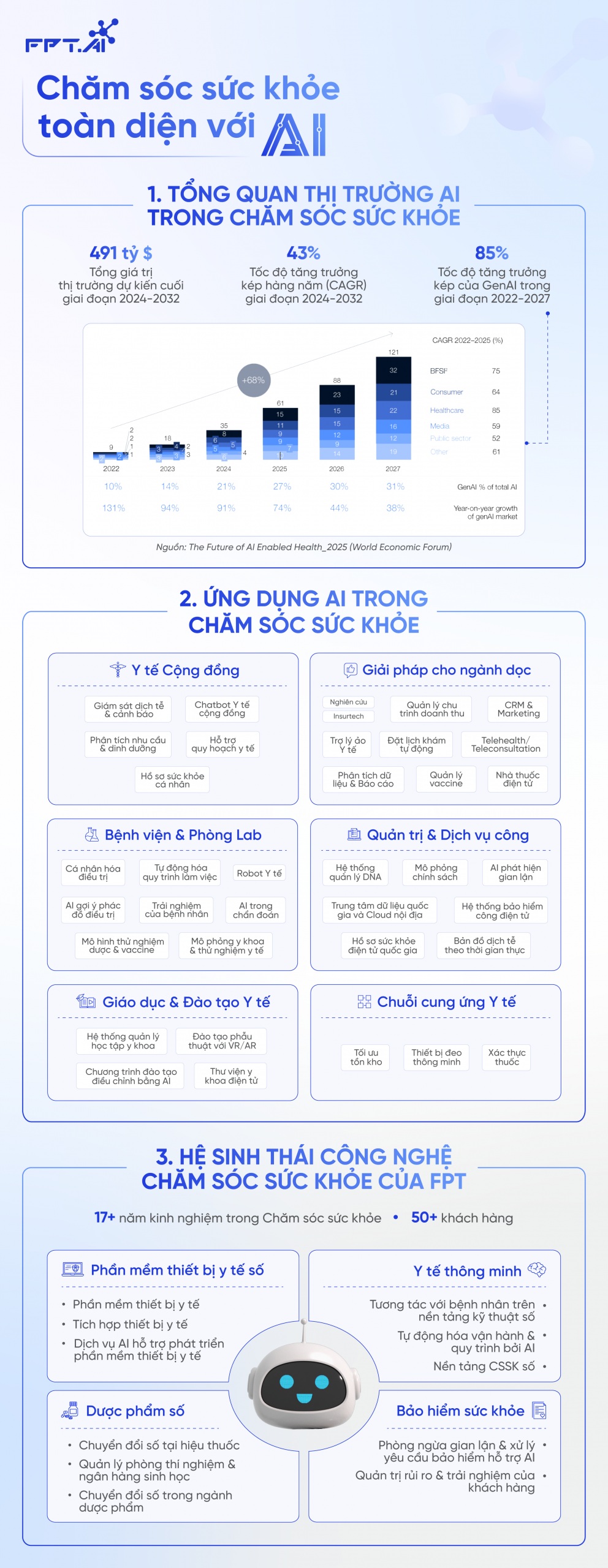 Theo diễn đàn kinh tế thế giới, dự kiến đến năm 2030 thế giới sẽ thiếu hụt khoảng 11 triệu nhân viên y tế. Tình trạng này dẫn đến nhiều người dân không được tiếp cận đến các dịch vụ y tế cơ bản. Và AI trở thành công nghệ quan trọng giúp thu hẹp khoảng cách này và tạo nên cuộc cách mạng cho ngành y tế toàn cầu.