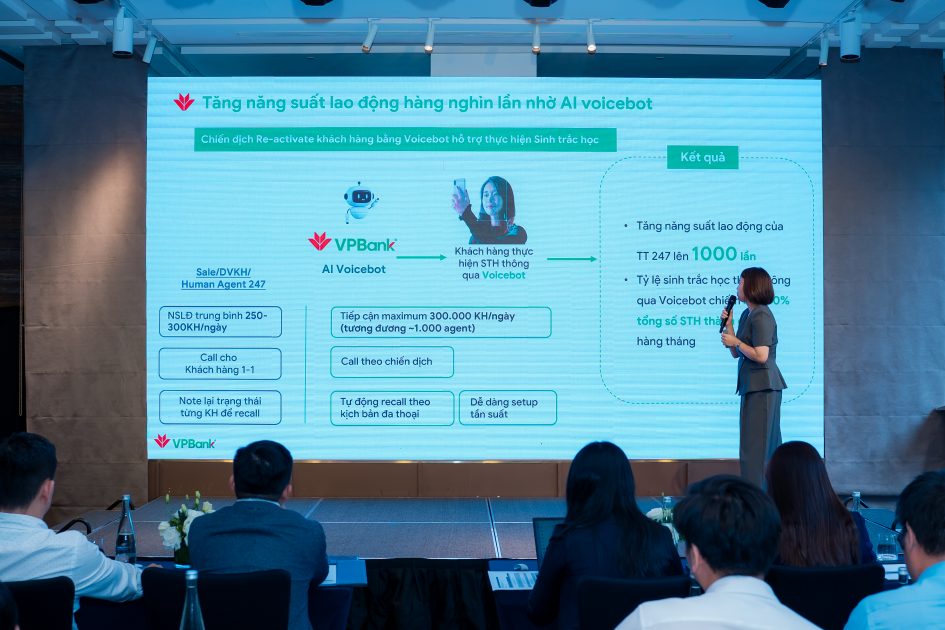Với việc bắt tay cùng FPT, VPBank đã đưa AI Voicebot vào hoạt động của Contact Center, từ đó giúp tăng năng suất lao động lên hàng nghìn lần.