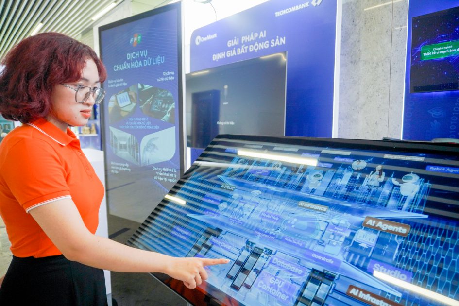 Tại khu vực triển lãm, FPT vinh dự giới thiệu hệ sinh thái công nghệ thông minh tập trung giải quyết bài toán cốt lõi về khai thác, làm giàu dữ liệu